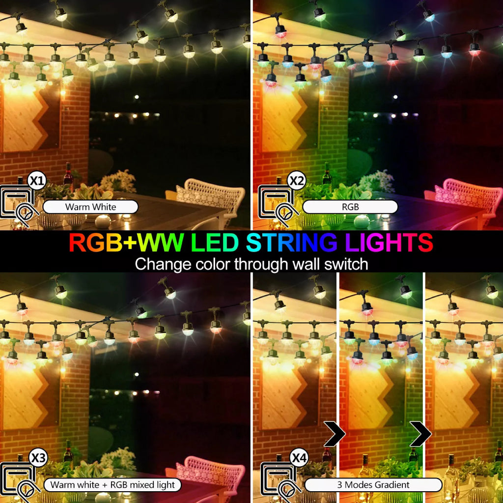 IDEAL FOR INDOOR & OUTDOOR DÉCOR: RGB+WW String lights have been a staple in indoor and outdoor party lighting because of their ability to effortlessly blend with the decor of any space. Not only decorating in tight quarters easily and provide just enough light without overpowering the space. Create endless possibilities for your light show in patio, deck, backyard, porch, cafe, festivals and birthday party and more.