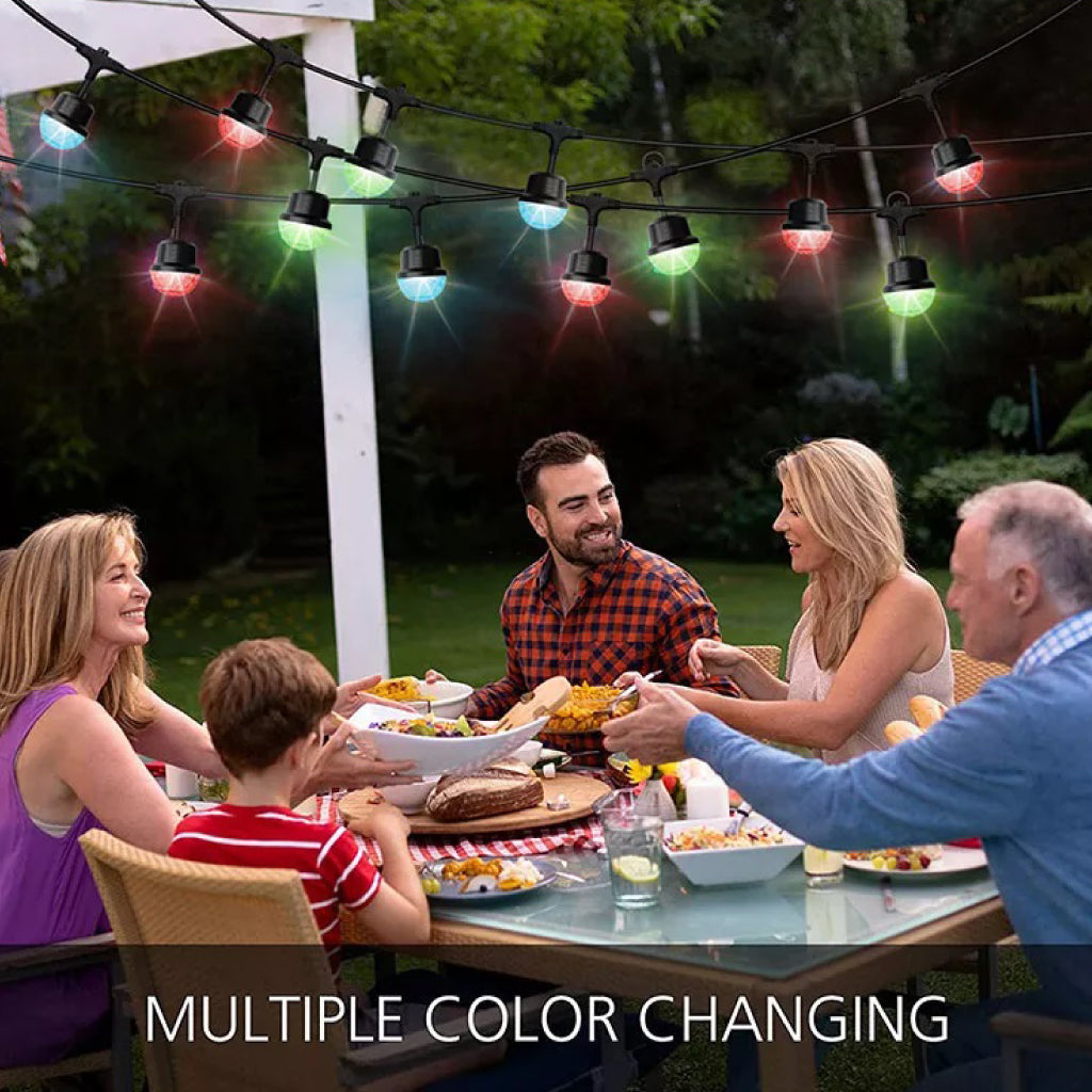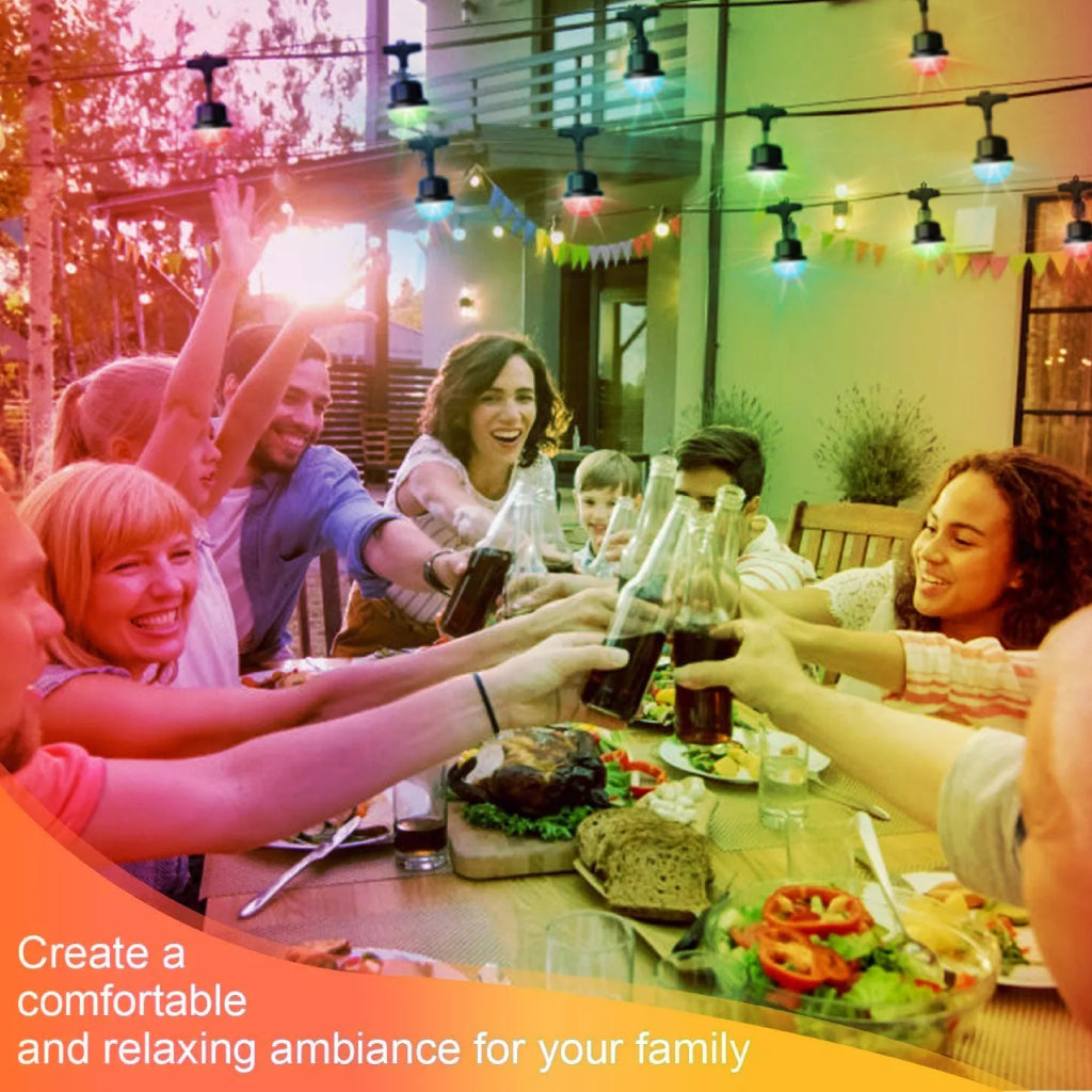 39 FT COLOR CHANGING STRING LIGHTS: They are a set of 15 pcs colorful bulbs attached to a wire rope fairy light, with a total spacing between bulbs of 0.7meters. Designed for decorating large backyards, it provides a relaxing and cozy atmosphere for any festival or party.